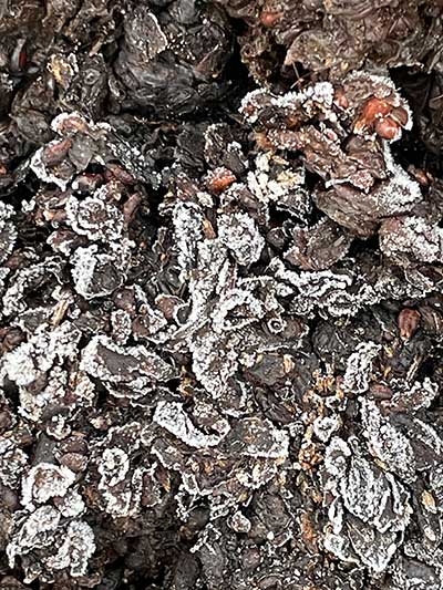 Die Masse ist wertvolle organische Biomasse, denn sie enthält viele wichtige Nährstoffe, nämlich die vom Keltern übrig gebliebenen Inhaltsstoffe der reifen Trauben mit ihren Kohlenhydraten, Vitaminen, Mineralstoffen und sekundären Pflanzenstoffen. Was liegt also näher, als sie zu kompostieren und auf diesem Weg den Reben wieder zuzuführen.