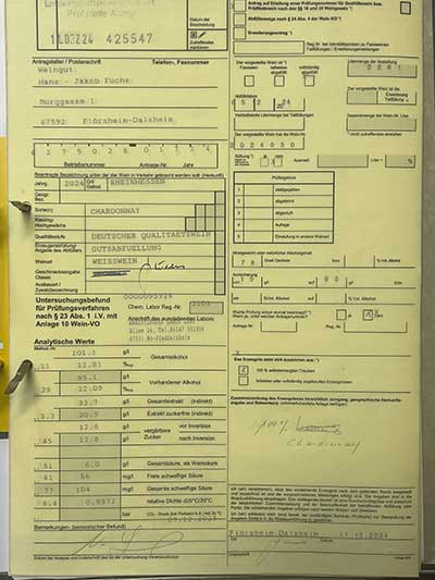 Erfreulicherweise stellt die Landwirtschaftskammer die Daten zur Verfügung. Wenn die Weine dort zur Erteilung der Amtlichen Prüfnummer angestellt werden, erfasst die LWK die Laborwerte zu jedem Wein und errechnet daraus die Nährwerte. Diese Daten von offizieller Seite übernehmen wir gerne für unsere e-Labels.