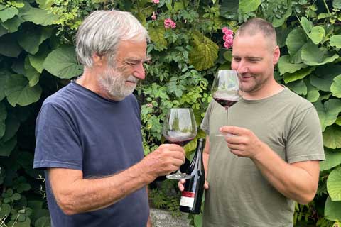 In Spitzenlagen beiderseits der “Grenze” zwischen den beiden Weinbaugebieten kultiviert das Weingut klassische Rebsorten, Neuzüchtungen und etliche Raritäten, davon knapp die Hälfte Rotwein-Rebsorten.