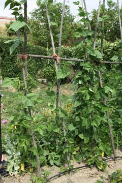 Stangenbohnen am Spalier aus Bohnenstangen