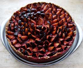 Die verschiedenen Pflaumensorten verhalten sich beim Backen (bzw. beim Erhitzen) unterschiedlich: Manche Sorten verlieren ihre Süße, andere bleiben süß. Gelegentlich findet man bei den Sortenbeschreibungen einen Hinweis wie “backt süß”. Nach meiner Erfahrung backen die frühen, besonders saftreichen Sorten, nämlich die rundlichen Pflaumen eher sauer, während die später reifenden Zwetschen süß backen und viel weniger Saft ziehen.