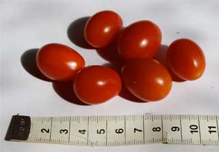 Die kleinen, eiförmigen Früchte schmecken aromatisch und platzen nur bei Regen gelegentlich auf. Gute, wohlschmeckende Alternative zu den ewig platzenden runden Cocktailtomaten