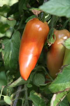 Die langen, schmalen Früchte werden bis etwa 15 cm lang und schmecken sehr aromatisch. Ihr Fruchtfleisch ist fest und dennoch saftig – optimal für Salate, für Saucen und zum Trocknen.