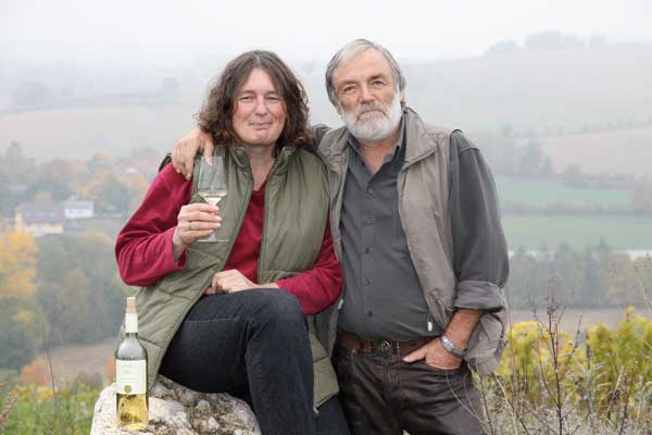 The CEO of the Fuchs Wine Estate Hans-Jakob and his wife Hildegard. The picture was taken in the Pfalz region at the foot of the Moscato Giallo vineyard.
