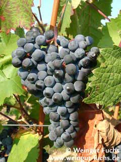 very fruity, deep dark red grape juice pressed from ripe Dornfelder grapes