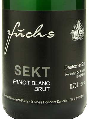 Dieser Pinot Blanc Sekt brut (“Pinot Blanc” ist der französische Name der Rebsorte Weißburgunder) schmeckt extra trocken und ähnelt vom Typ einem Champagner.