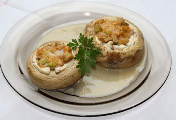 Die Champignonköpfe mit der Masse füllen und in einer leicht gefetteten Pfanne anbraten. Nach ca. 5 Min. mit 2 EL Verjus ablöschen. Sobald der Verjus eingeköchelt ist, die Sahnemischung um die Champignongs gießen und ca. 10–15 Min. bei schwacher Hitze fertig garen.