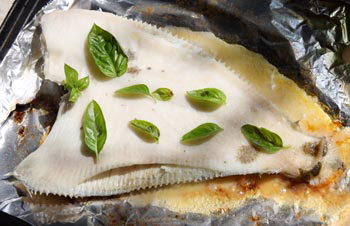 Nach etwa 10 Min. die Schollen mit dem Verjus begießen und die Basilikumblättchen darauf verteilen. Bei schwacher Hitze noch einige Minuten zu Ende garen. Mit Salz und Pfeffer würzen.