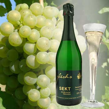 Scheurebe Sekt trocken ist der Begehrteste unserer Sekte, denn er ist nicht zu trocken und hat den wunderbar fruchtigen Geschmack der Scheurebe.
