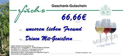 Falls Sie sich nicht sicher sind, ob der Glückspilz, den Sie beschenken möchten, lieber trocken oder lieblich mag, ob er/sie Weißwein oder Rotwein bevorzugt – mit einem Geschenkgutschein verschenken Sie höchsten Weingenuss bei freier Auswahl aus unserem Sortiment.